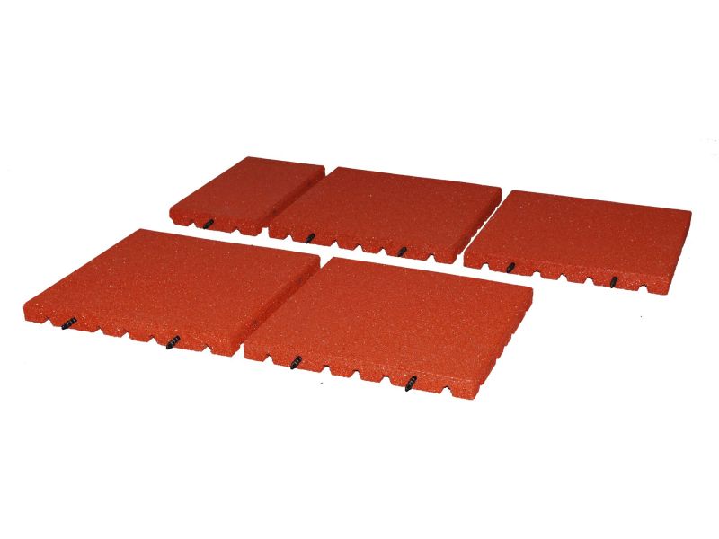 Safety tiles of 50 x 50 cm are easier to handle on the constrution site compared to 1 x 1 m tiles. Installation work is possible by a single person when using such tiles, made of rubber granules